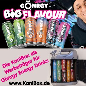 Für die Werbeaktion zum „Gönrgy“ Energy Drink ist die KaniBox die passende Verpackung für die Präsentation!