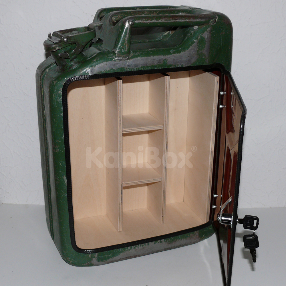 Die KanisterBar wurde aus einem alten Benzinkanister aus dem Jahr 1996 handgefertigt. Der Kanister hat eine authentische Patina und die großflächigen Scheuerstellen weisen auf einen harten Einsatz hin.| Die KaniBox als Geschenkidee |Die KanisterBar ist ein ausgefallenes Geschenk zum 29. Geburtstag oder zum Firmen-Jubiläum zum Gründungsjahr 1996